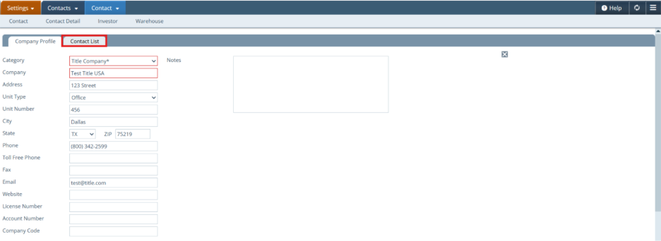 - Enter the contact’s information (Name, Title, Phone, Email, etc.).