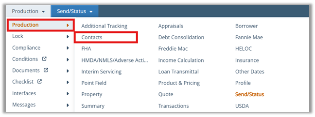 By creating Contacts once in Admin Settings and then selecting them inside a loan file, you standardize who your team uses and ensure the right information is always pulled into Production. The result is faster data entry, fewer errors, cleaner loan files, and a smoother workflow—especially when using Primary contacts for default selections.