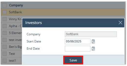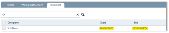 - This list is populated by investors created in Settings > Contacts > Investor.