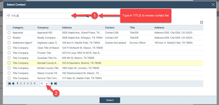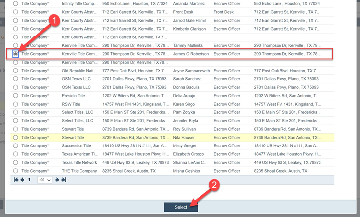 4. Select the title company and click on the Select
