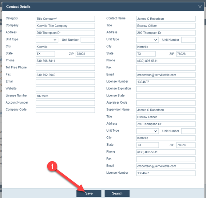 Note: Adding a title company (or any entity) to your organization’s contact list requires your system administrator to add it via Settings > Contacts. After it has been added to Settings > Contacts, you will be able to search for and find it via the above steps.