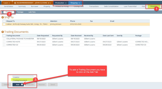 7. To track the send date of trailing documents, the Shipper must go to Production > Shipping > Shipping.