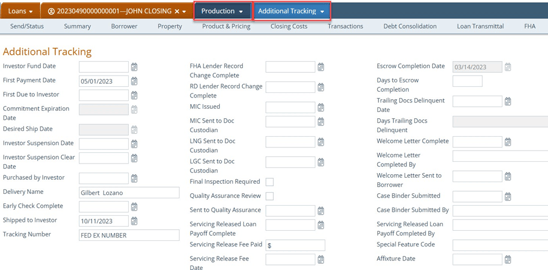 10. You can go to the Production > Additional Tracking to fill in the dates for tracking purposes.