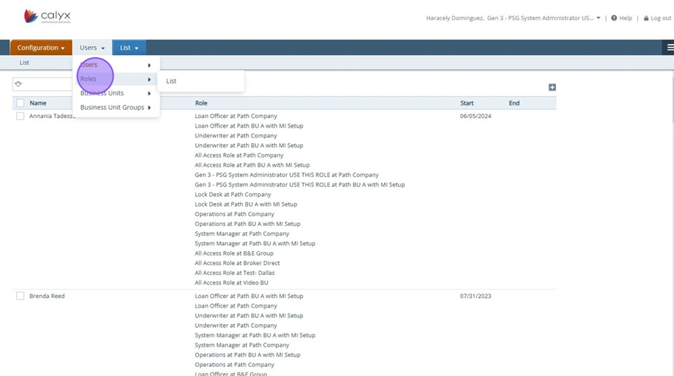 2. Click "Roles"