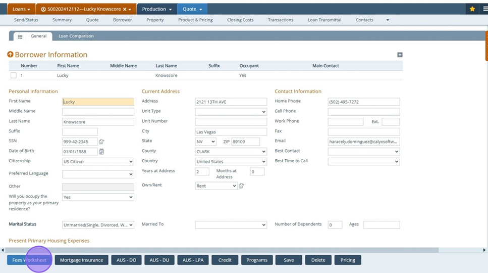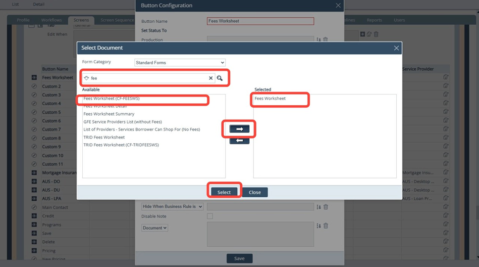 In this example, we will add "Fees Worksheet" form to the quote screen for Loan officers.