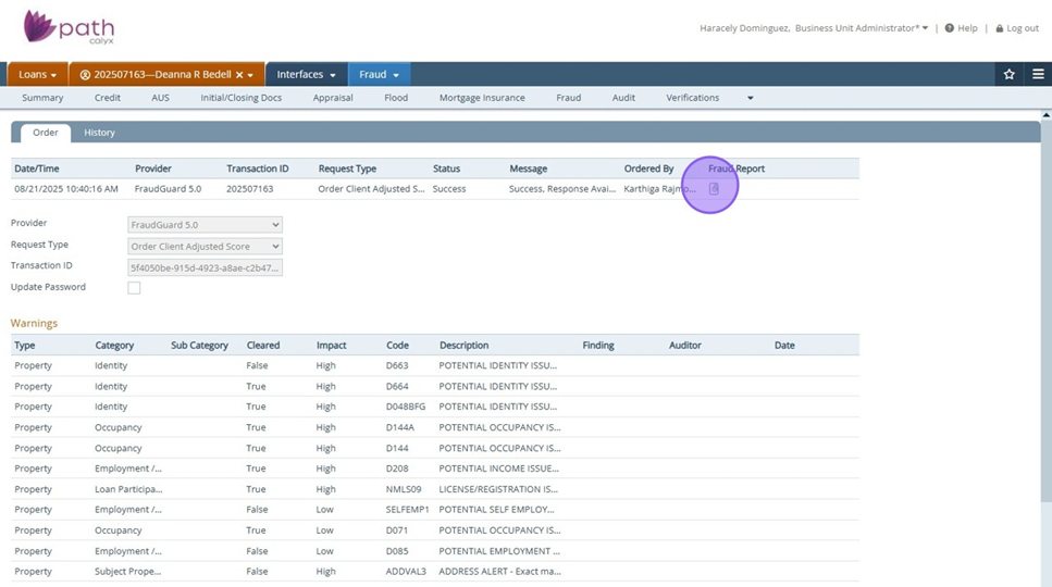 - If a report has been ordered via FraudGuard, user may order through Fraudguard 5.0 with no issues