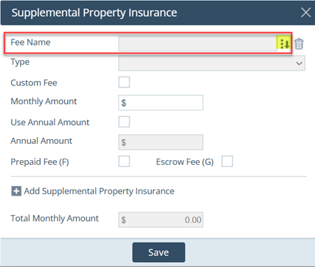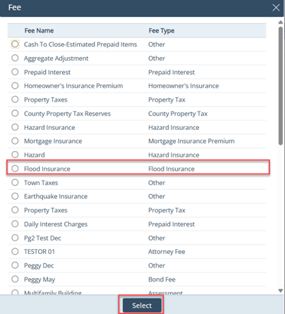 - Click the select icon of Fee Name.
