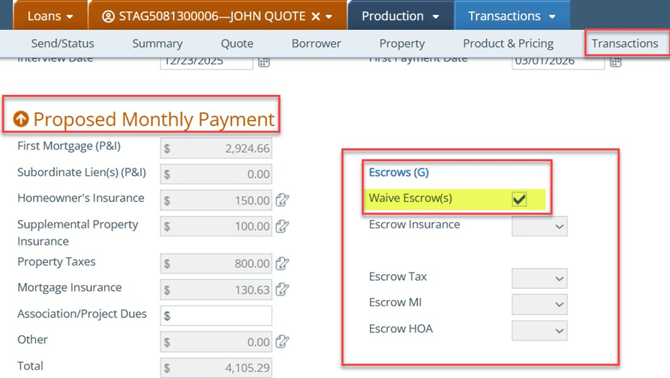 Note: Follow company guidelines—waiving escrows may impact pricing adjustments and closing fees.