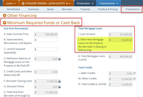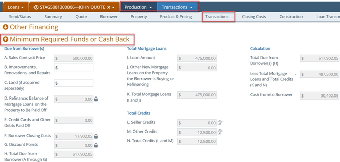- Review Minimum Required Funds/Cash Back calculations and confirm the cash-to-close makes