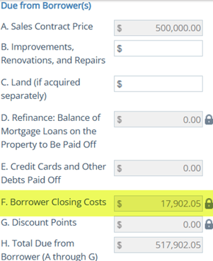 - Borrower Closing Costs populate