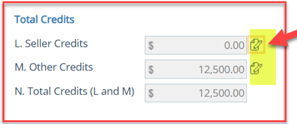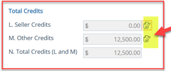 - Seller credit entered (line L) and other credits validated (line M)