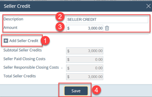 - Enter the Amount (Path calculates Total Seller Credits).