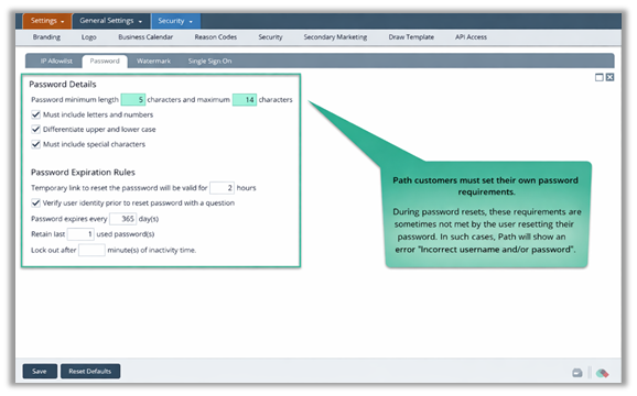 Note: Path may still display “Incorrect username and password” even if the reset process completed, when the real issue is that the password does not meet policy requirements.