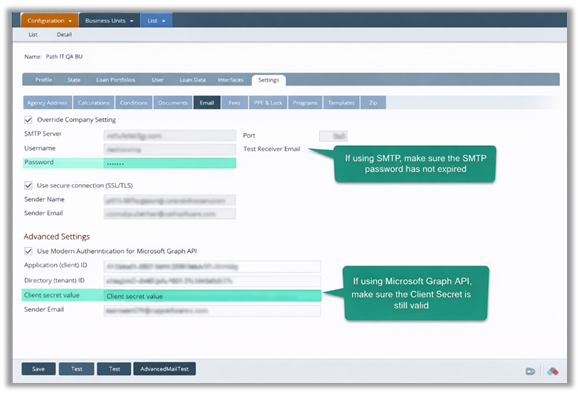 - SMTP: Customer IT verifies the SMTP password is valid