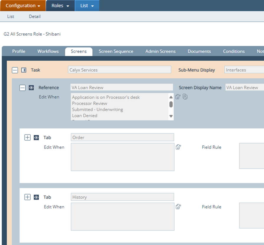 As with any new screen, system administrators need to enable the VA Loan Review screen for the roles that are selected to have access to this screen and its tabs.