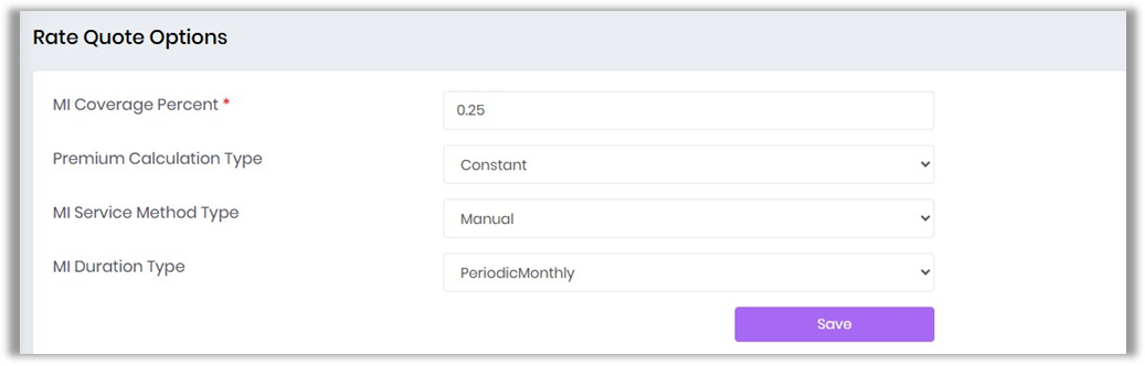 Defines default settings used when submitting a Mortgage Insurance application after a rate quote has been selected.