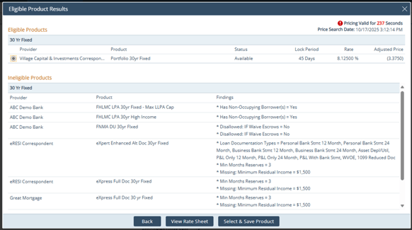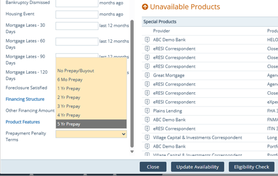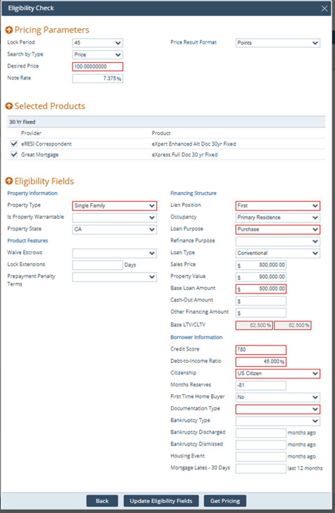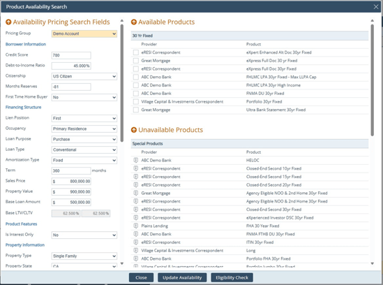 - Available products that are displayed are based on the loan information already The broader the loan information for product and pricing, the wider the range of available pricing.