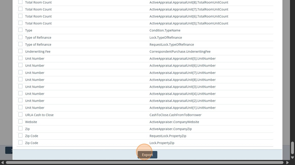 15. Settings - Notifications: Click Export to add the field to your notification.
