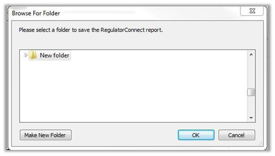 7. After the report is generated, the Browse for Folder dialog box is displayed prompting you to navigate to the location where you want to save the RegulatorConnect Licensee Examination File (LEF) file.