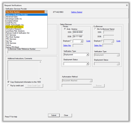 DataVerify Verifications in Point allows you to submit verification requests for borrowers or legal entities directly from a loan file. This article covers how to access DataVerify, select the appropriate verification type, submit a new order, enter credentials when prompted, upload supporting documents when required, and complete submission for processing.