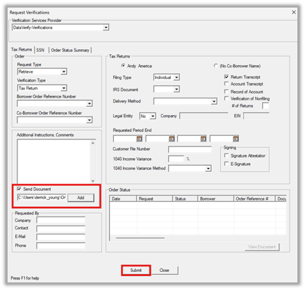 10. Select Submit to send the verification request.