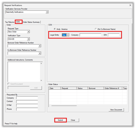 Submit a Legal Entity Verification (SSN Tab)