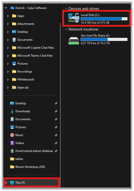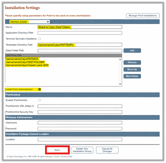 This process helps keep Point consistent across all workstations by ensuring everyone uses the same shared data folders and templates. It also streamlines onboarding and updates by letting you apply standardized installation settings through MyCalyx instead of manually configuring each computer.