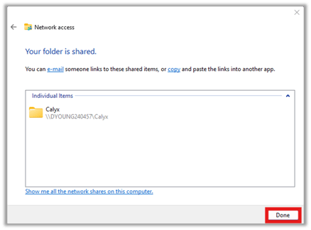 16. Once the folder is shared, click Done, and then close the folder properties window.
