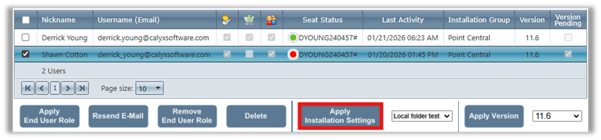 11. Select the checkbox next to each user you want to apply the saved installation settings to.