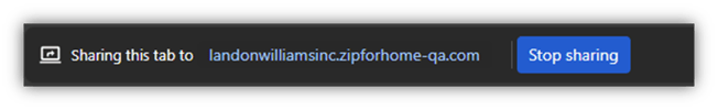 What the Zip user can see — The Zip user sees whatever the borrower chooses to share. If the borrower shares an entire browser or full screen, that broader view is visible.