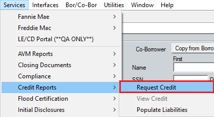 2. Navigate to Services >Credit Reports > Request Credit.