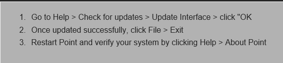 For more detailed instructions, visit our website to review KB 6016 Applying I-Updates in Point.