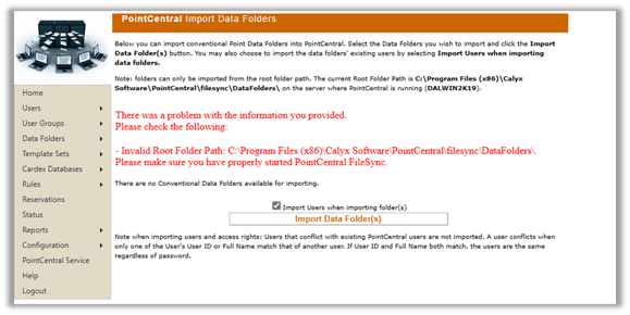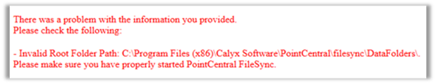 Invalid Root Folder Path – Adding Point Central Data Folders or Templates