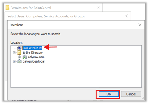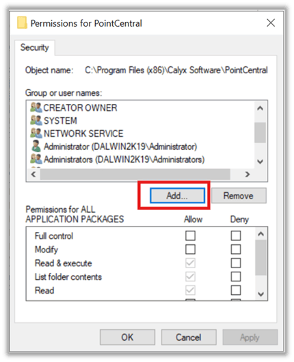 - After permissions are applied, verify that data folders and templates can be added successfully in Point Central.