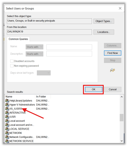 9. Select “Find Now” and from the results list, locate IIS_IUSRS.