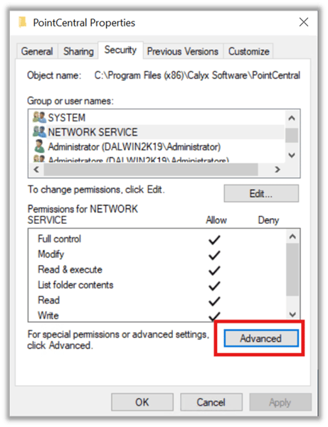 ⚠️ Important: Repeat step 5 to add Network Service with Full Control permissions.