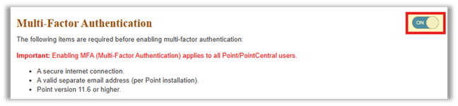 - Purpose: Adds an extra security layer for all Point and PointCentral users.