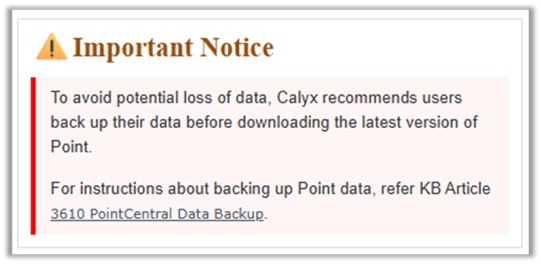 - Version Display: Shows the most recent available Point version (e.g., 10.6).