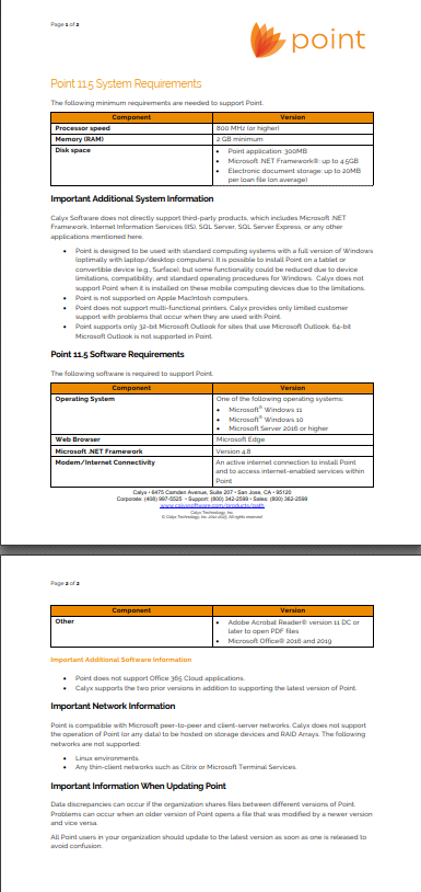 Point 11.5 System Requirements