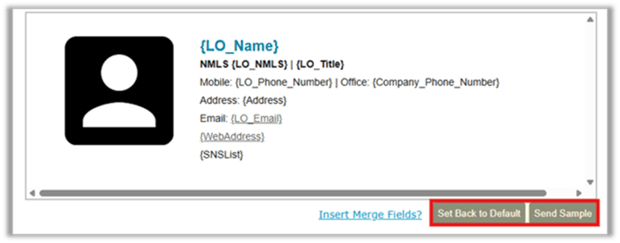 • Send Sample Email: Send a sample email to yourself to review actual merged field data and user profile images.