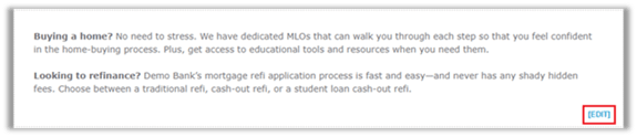 a. To change the verbiage in the Company Introduction area of the Company Main page click the Edit button.