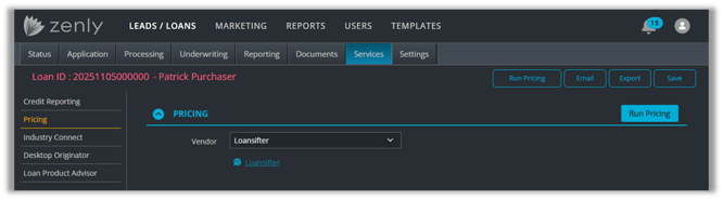 The WebConnect Pricing feature in Zenly allows loan originators to run live loan pricing searches directly from within the Loans module. This integration connects to your preferred pricing vendor (such as CIS or Loansifter) and opens the pricing engine in a new browser tab for quick, seamless comparisons — without leaving Zenly.