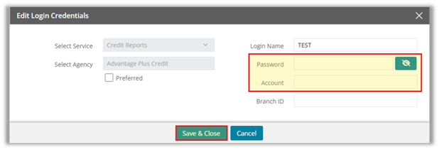 3. Update Credit Agency Credentials