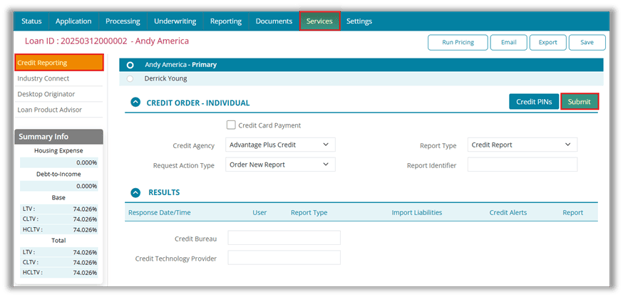 • Go to Services → Credit Reporting.