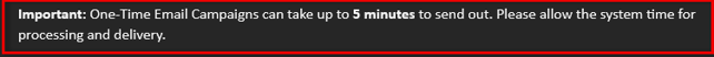 - One-Time Campaigns can be scheduled to send immediately or at a future date and time.