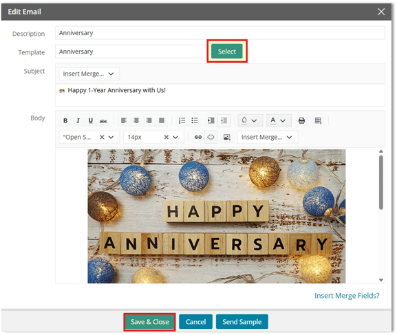 5. Select or create the Email Template to be used.