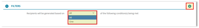 - In the "Recipients will be generated based on" dropdown, select whether All or Any of the conditions must be met.