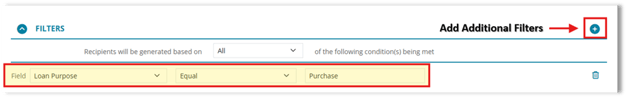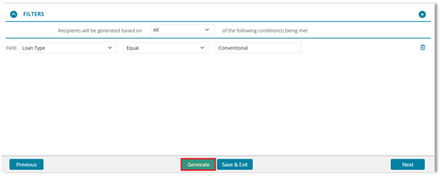 Recipients are generated based on the conditions you define in the Filters section.