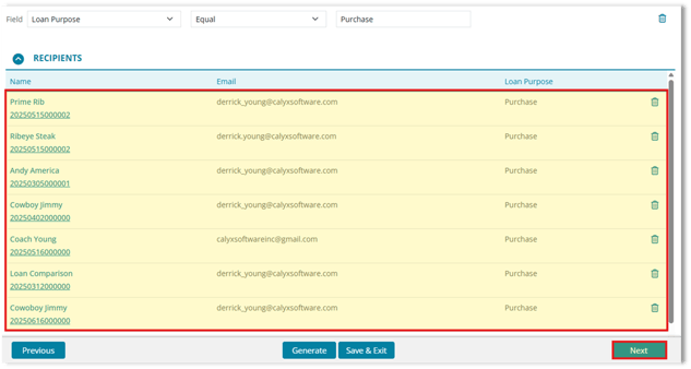 2. Review the generated recipient list to confirm accuracy.