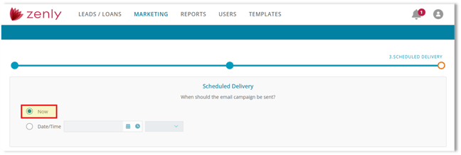 After generating recipients, proceed to Scheduled Delivery to choose when the One-Time Campaign should be sent.